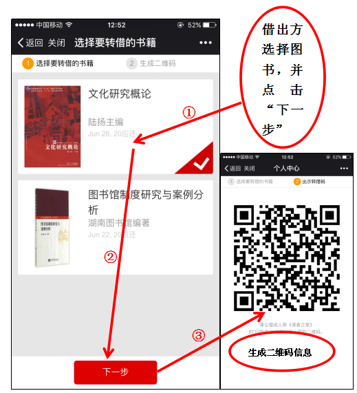 3.选择要转借的图书
