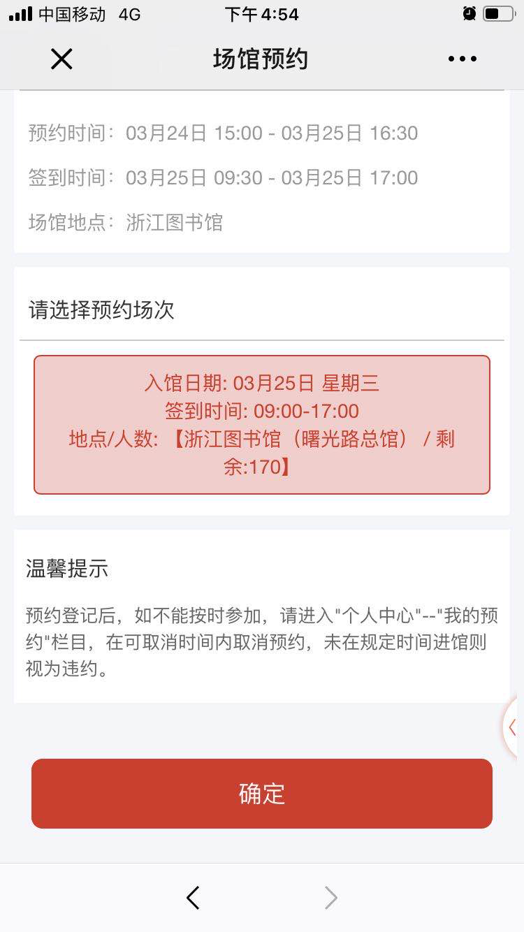 同意须知并预约,选择具体入馆时间,点击“确定”完成预约