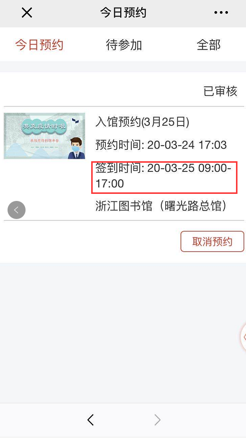 在此提醒大家,请按照个人所预约的时间入馆签到,如不能按时到馆,请点击“取消预约”,把名额留给有需要的读者。