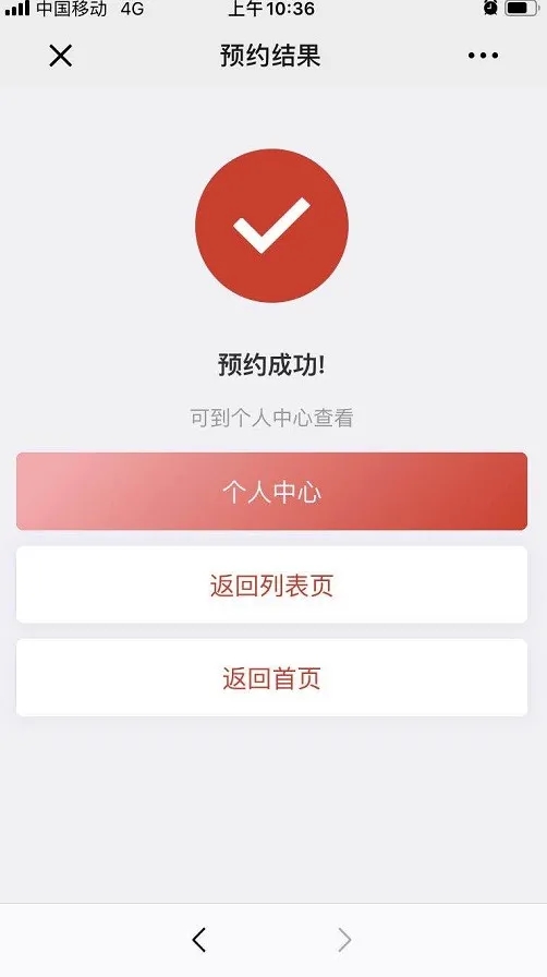 STEP3: 预约查询。进入“个人中心”,查看预约。