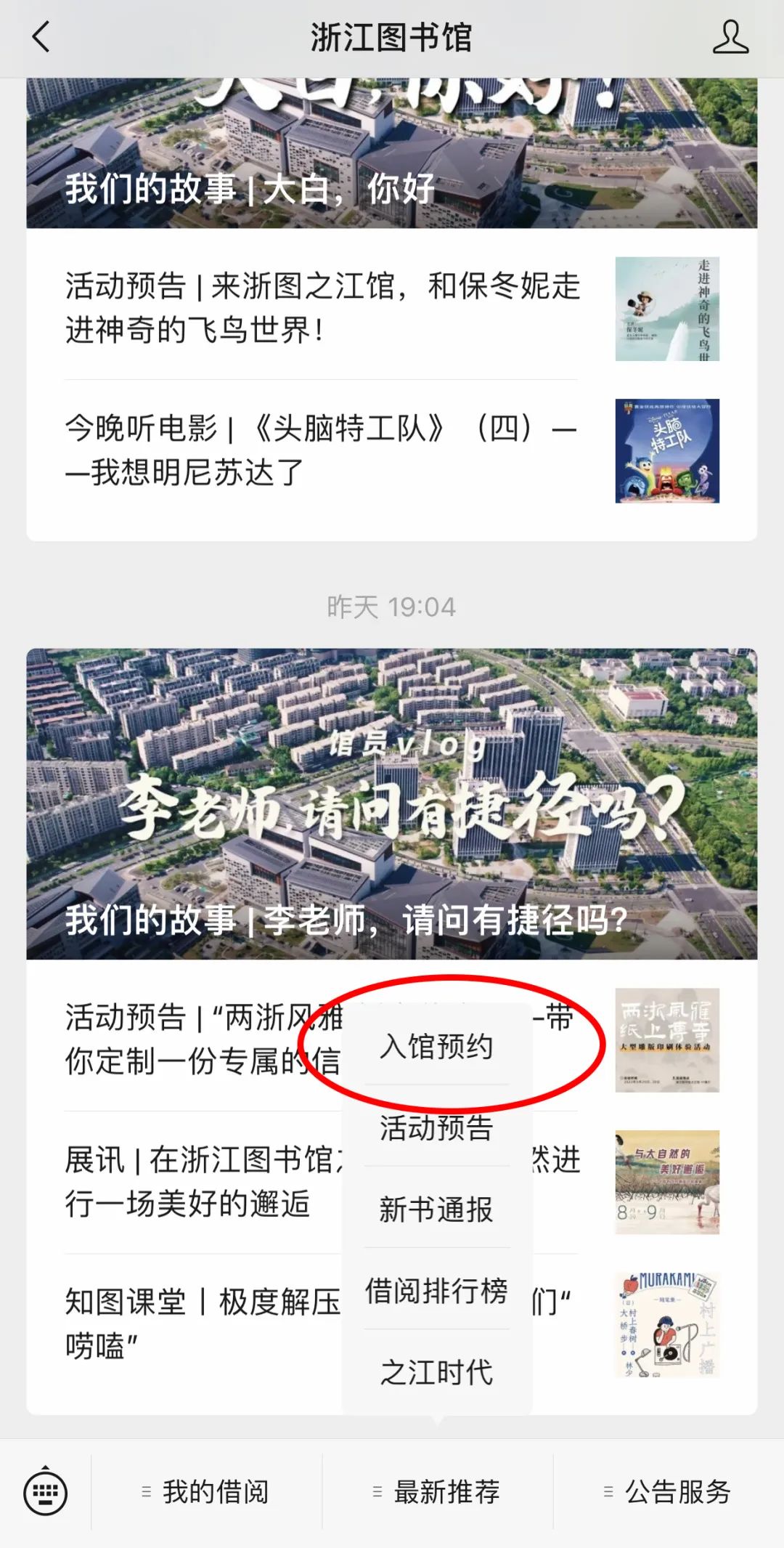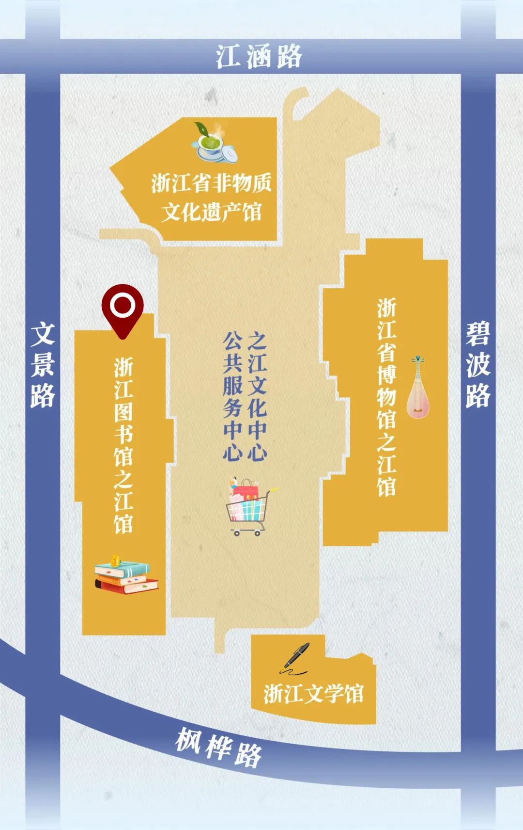 从浙江图书馆正门(近文景路)凭预约码入馆。