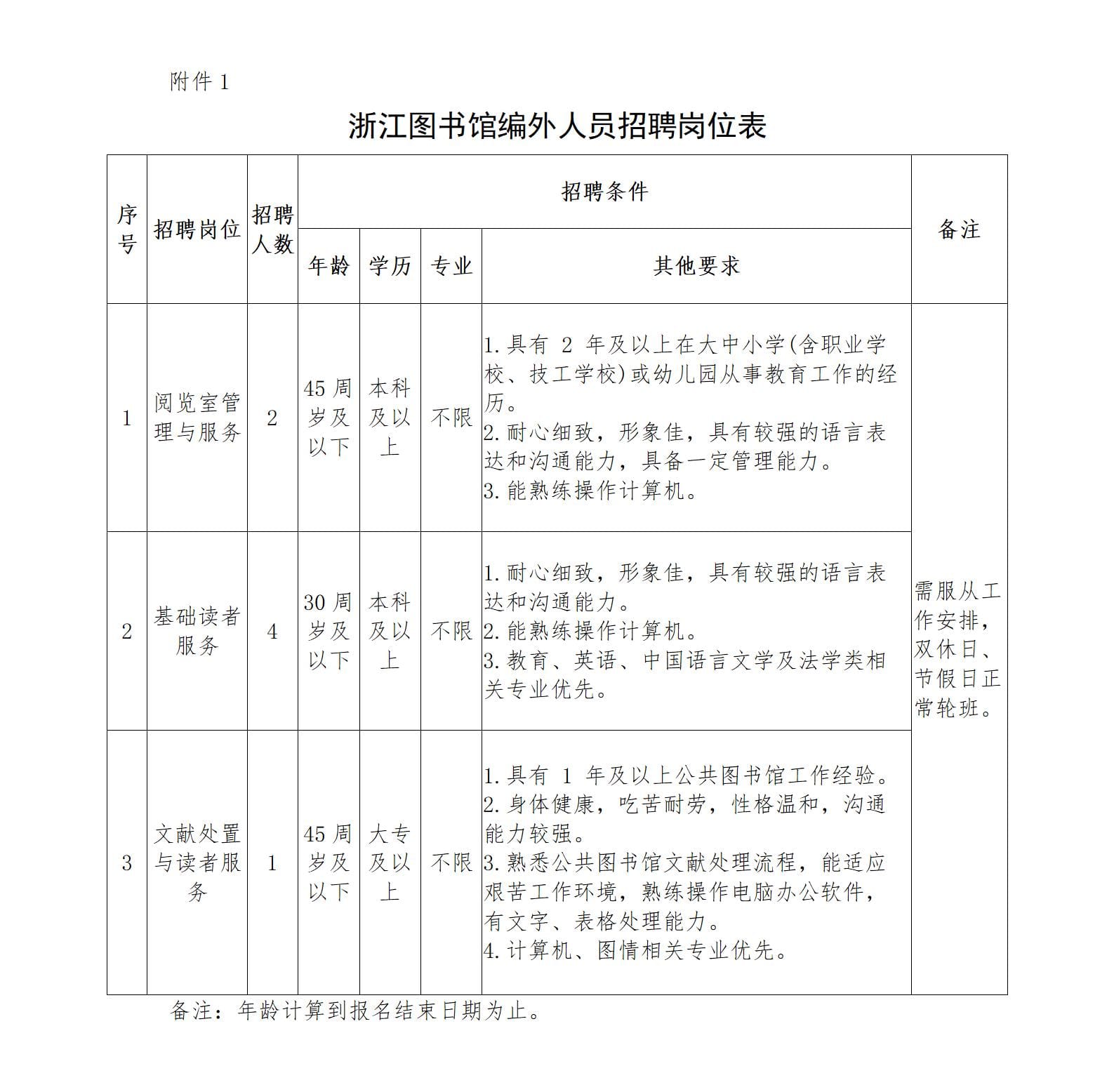 附件1:《浙江图书馆编外人员招聘岗位表》